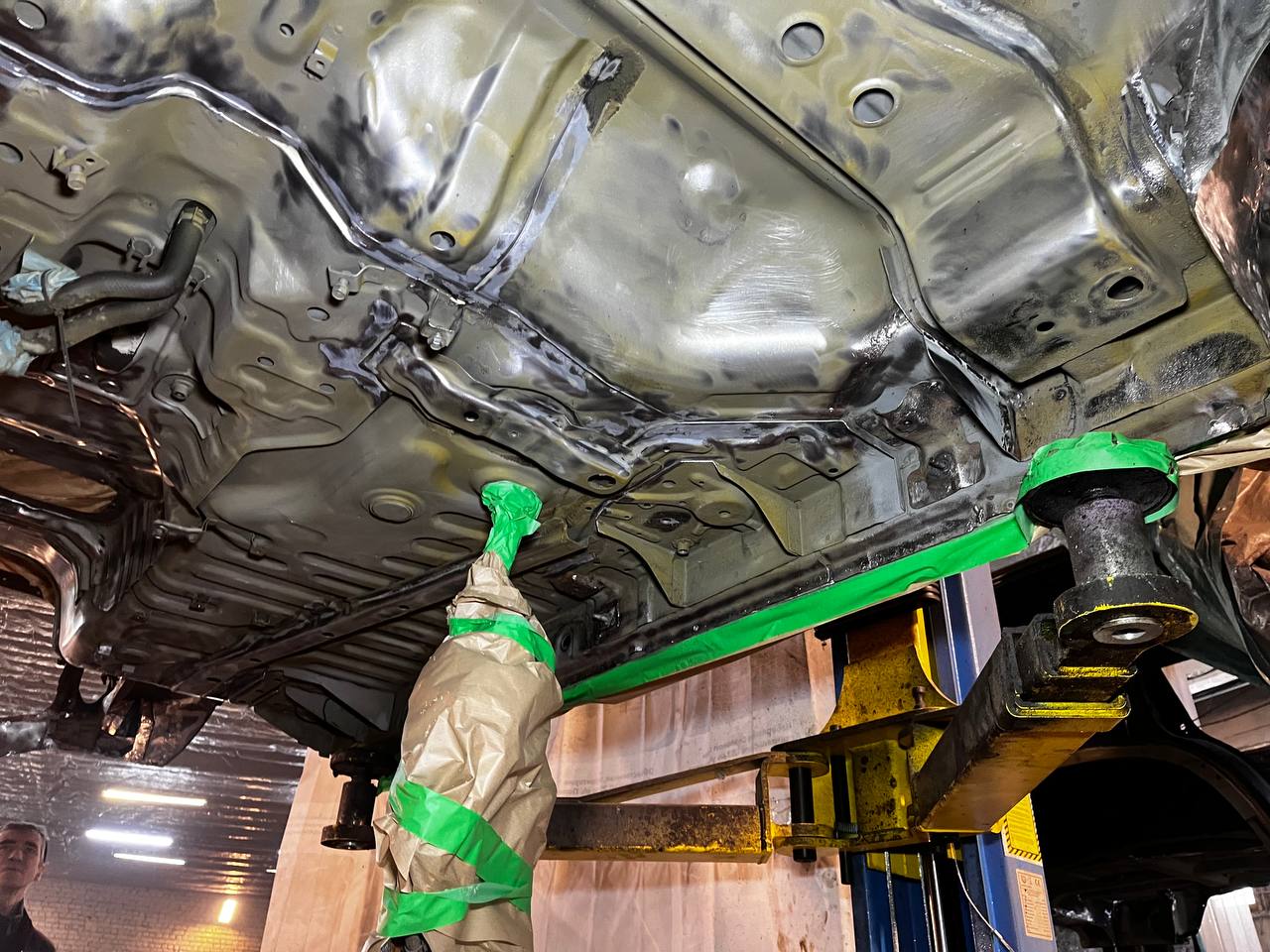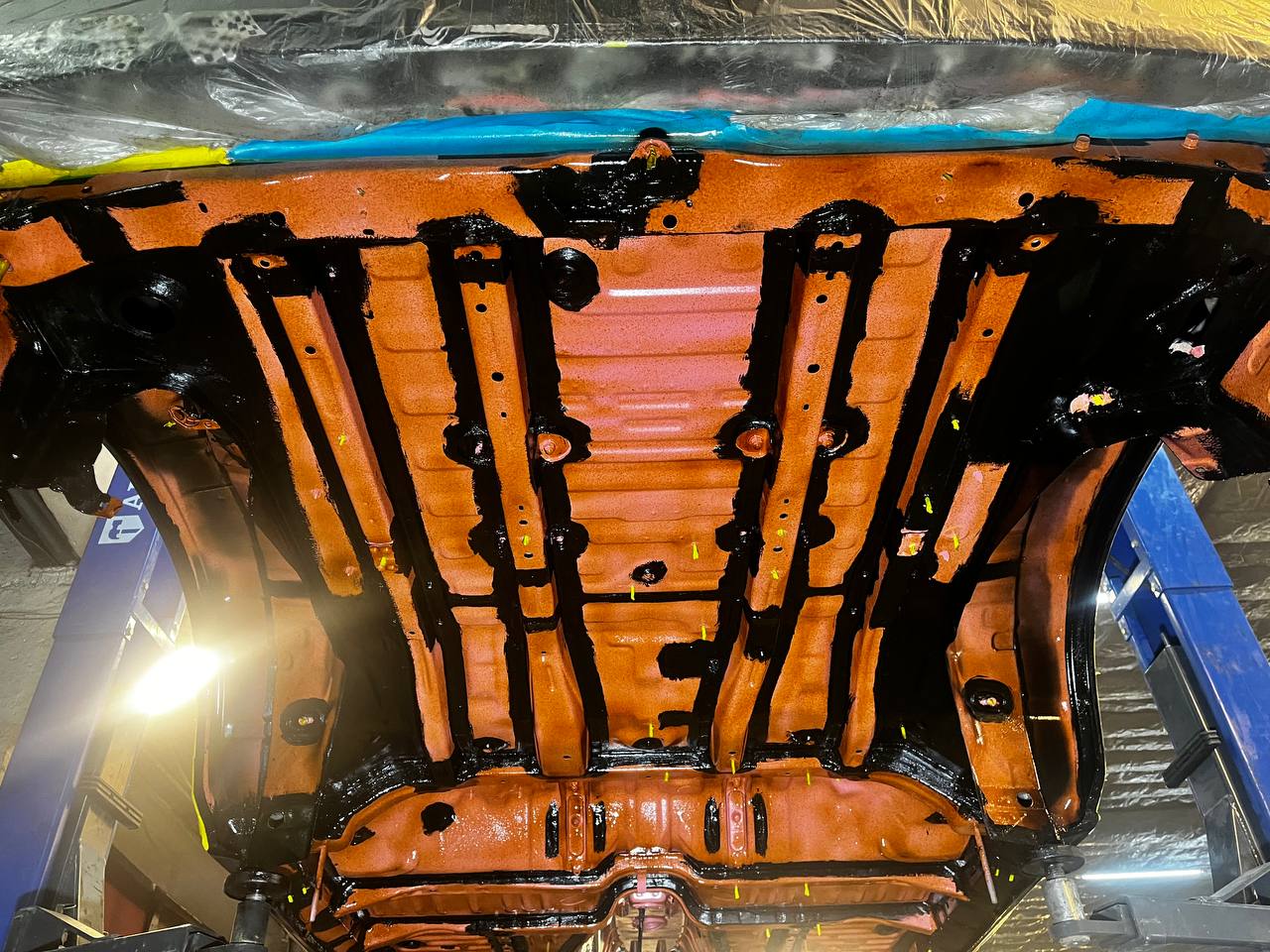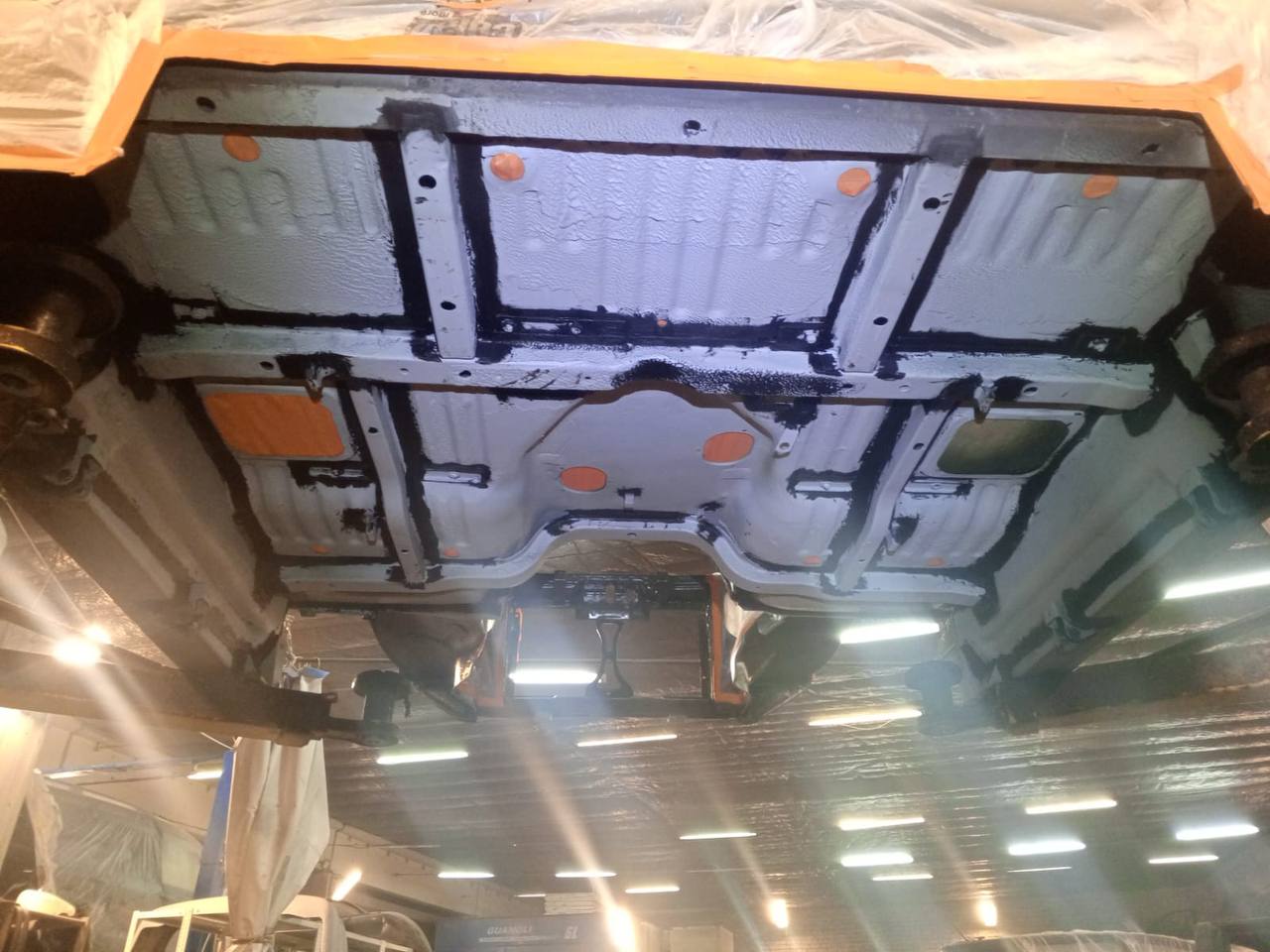 Мы проводим обработку всех скрытых полостей с использованием специального состава на основе восков и смол (ML-состав) Mercasol с ингибиторами коррозии. Эта процедура включает в себя обработку лонжеронов, порогов, нижних частей дверей, капота, багажника и, при наличии, рамы.
