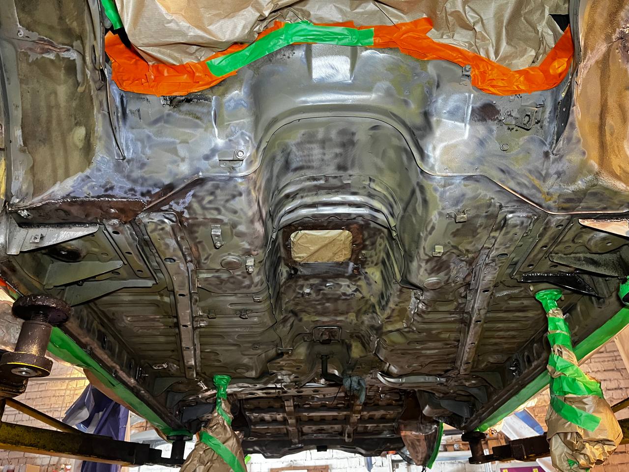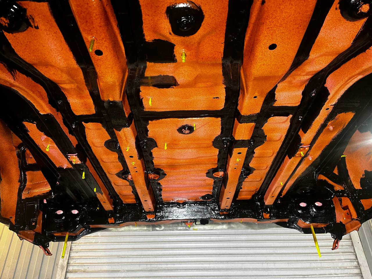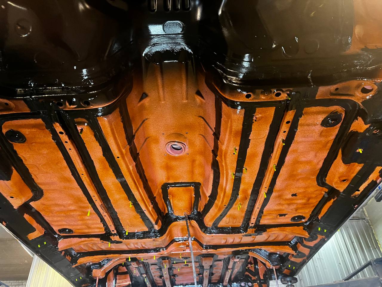 Мы проводим обработку всех скрытых полостей с использованием специального состава на основе восков и смол (ML-состав) Mercasol с ингибиторами коррозии. Эта процедура включает в себя обработку лонжеронов, порогов, нижних частей дверей, капота, багажника и, при наличии, рамы.