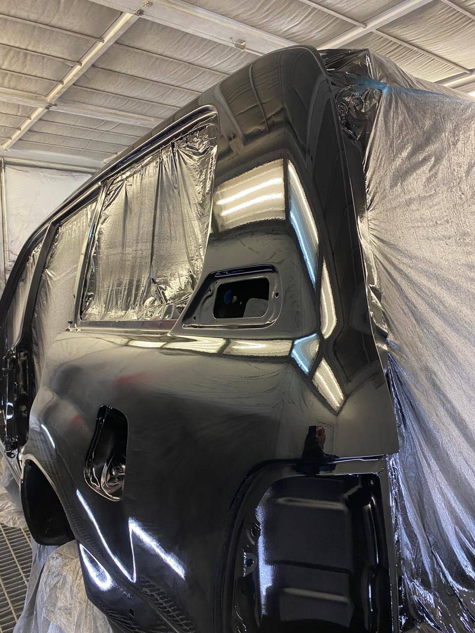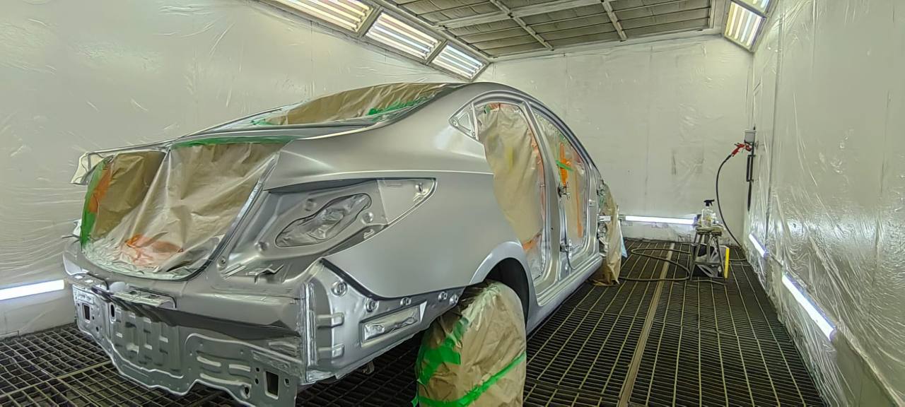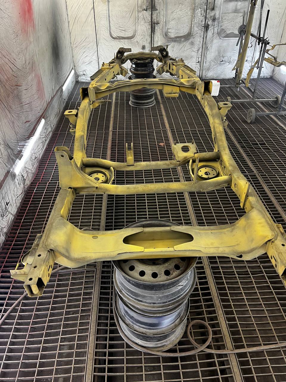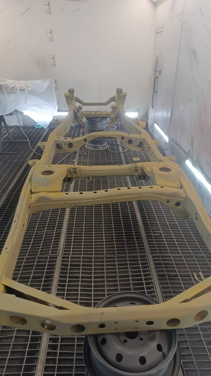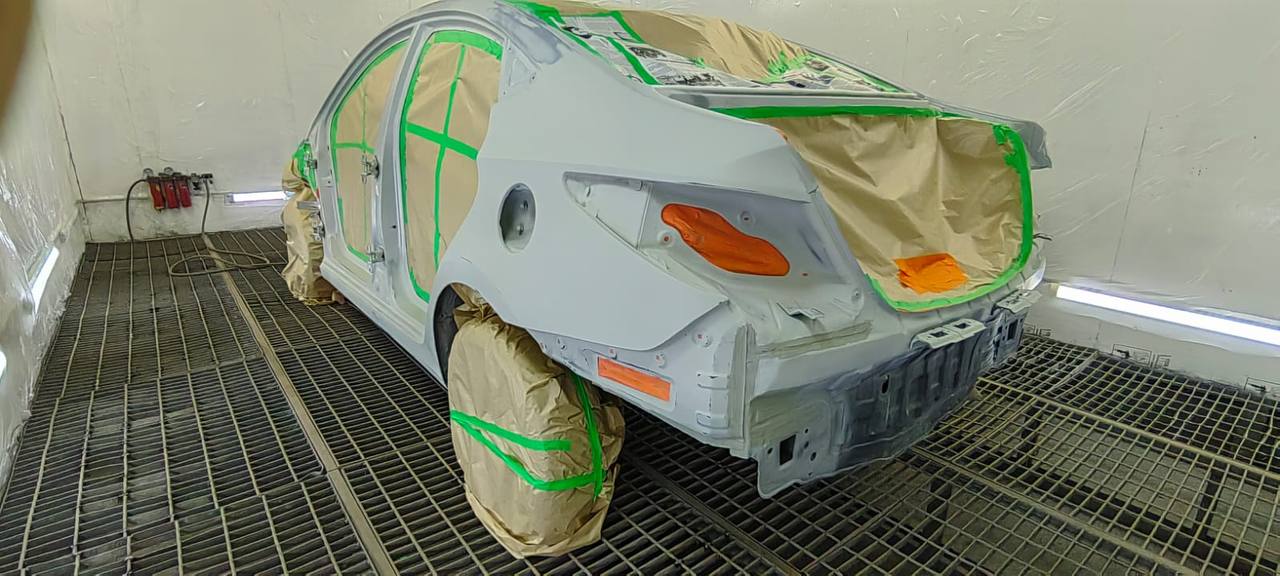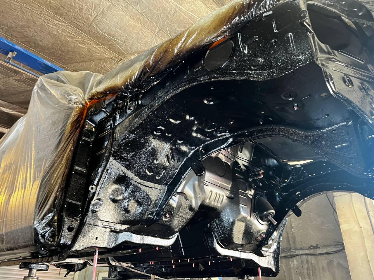 Мы покрываем автомобиль пленкой и проводим тщательную сушку поверхности, используя тепловые пушки для нагнетания горячего воздуха, а также сжатый воздух для просушки труднодоступных мест, рамы и лонжеронов.