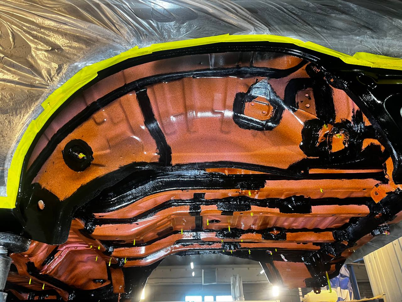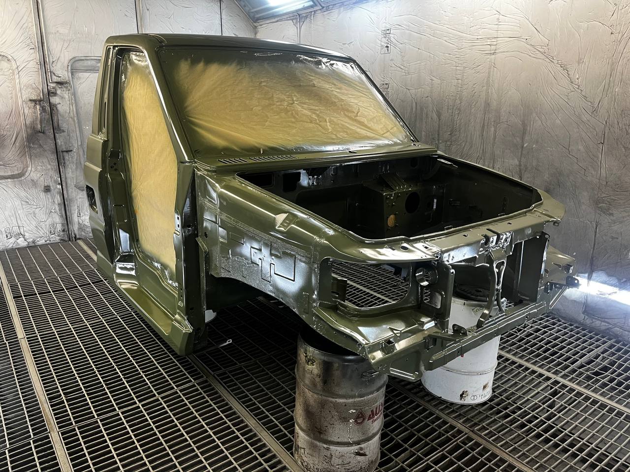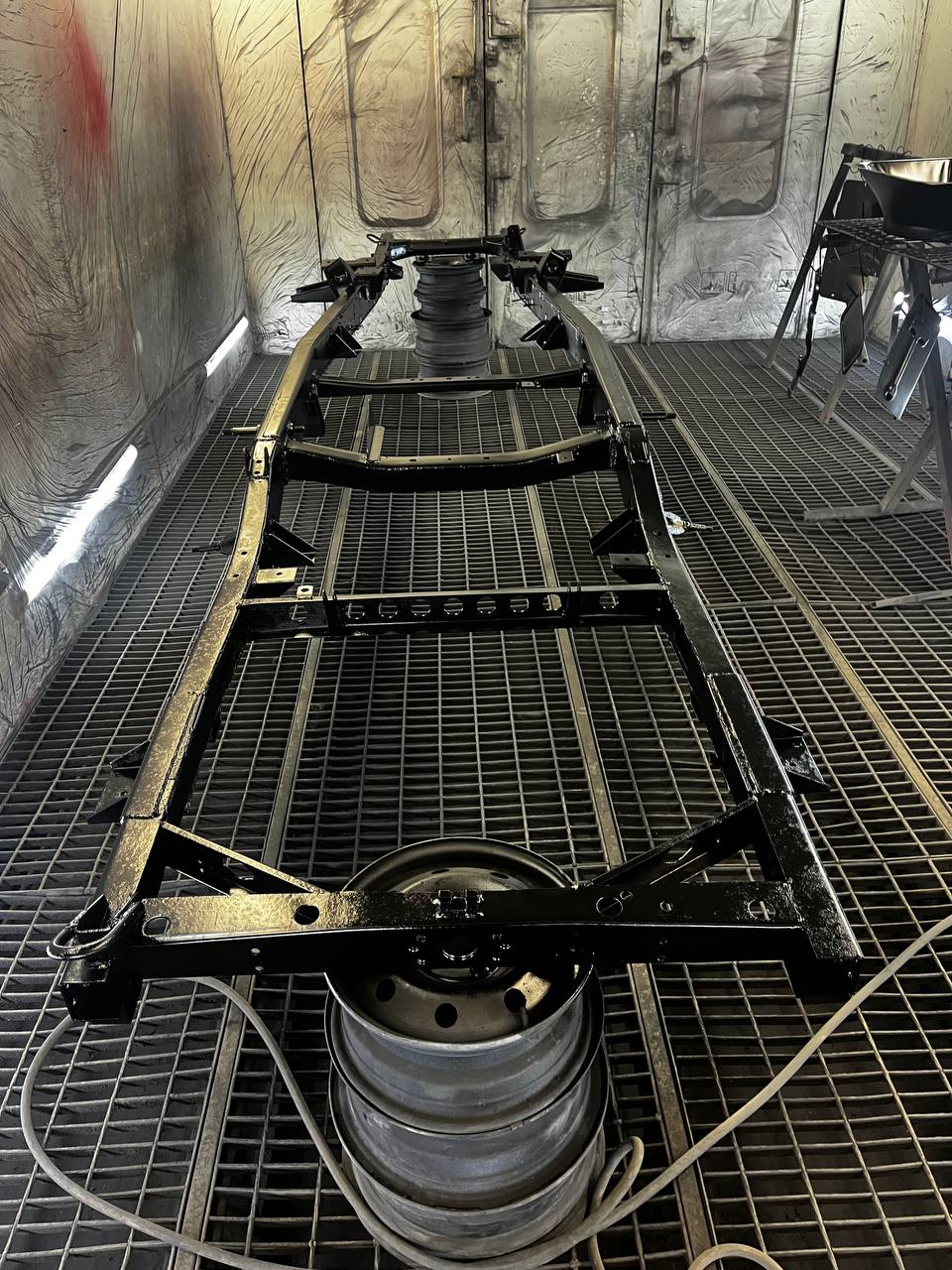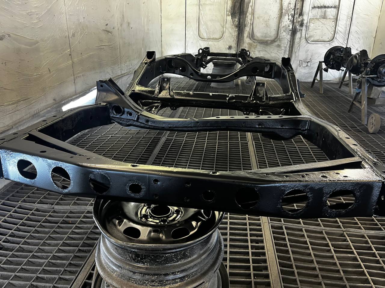 Мы покрываем автомобиль пленкой и проводим тщательную сушку поверхности, используя тепловые пушки для нагнетания горячего воздуха, а также сжатый воздух для просушки труднодоступных мест, рамы и лонжеронов.