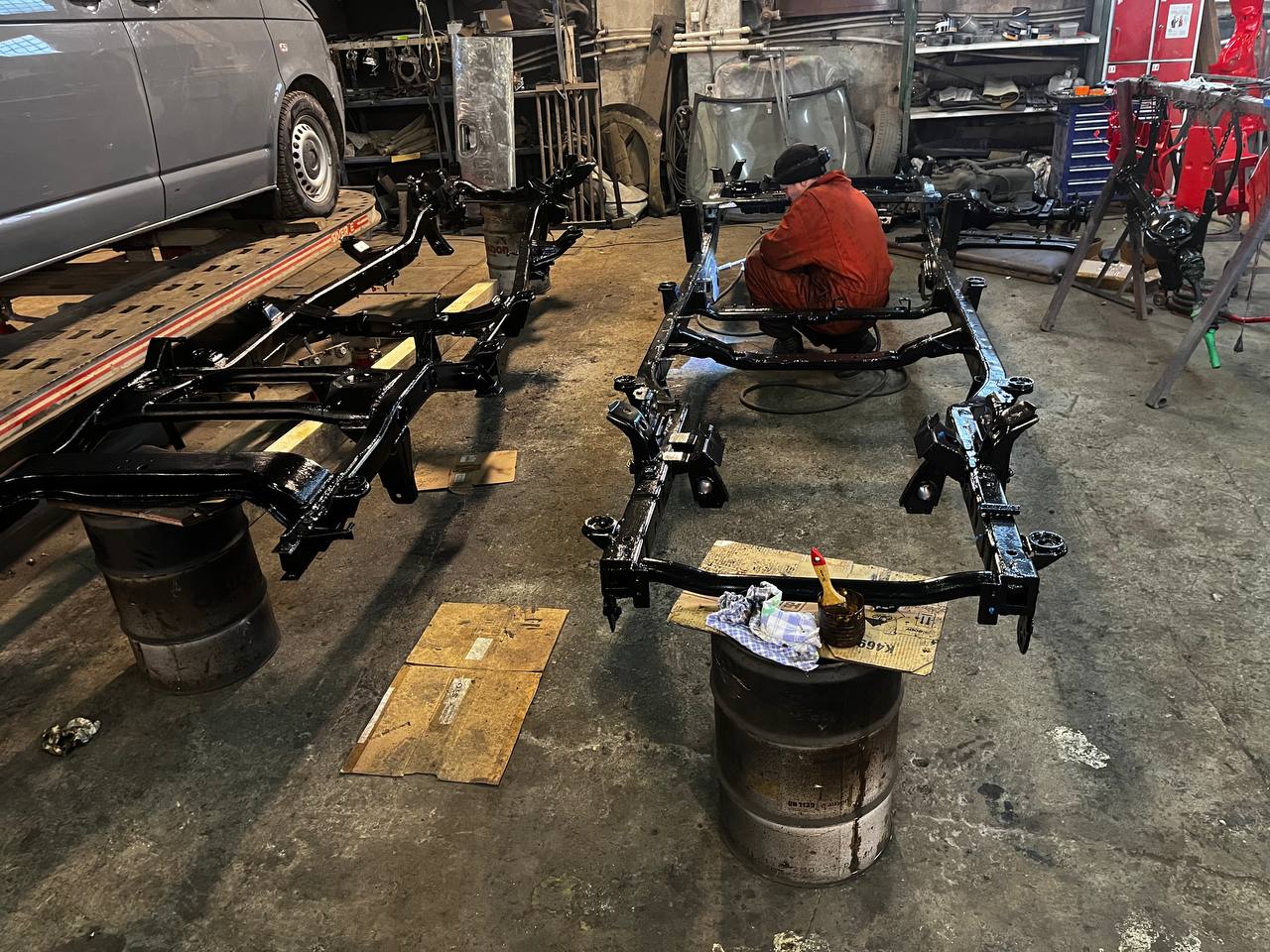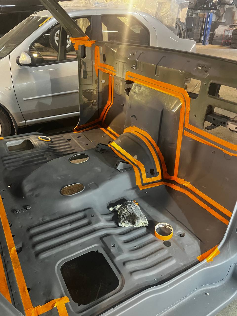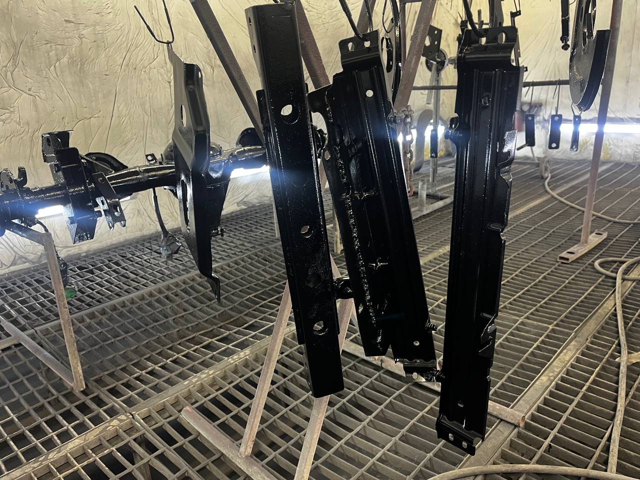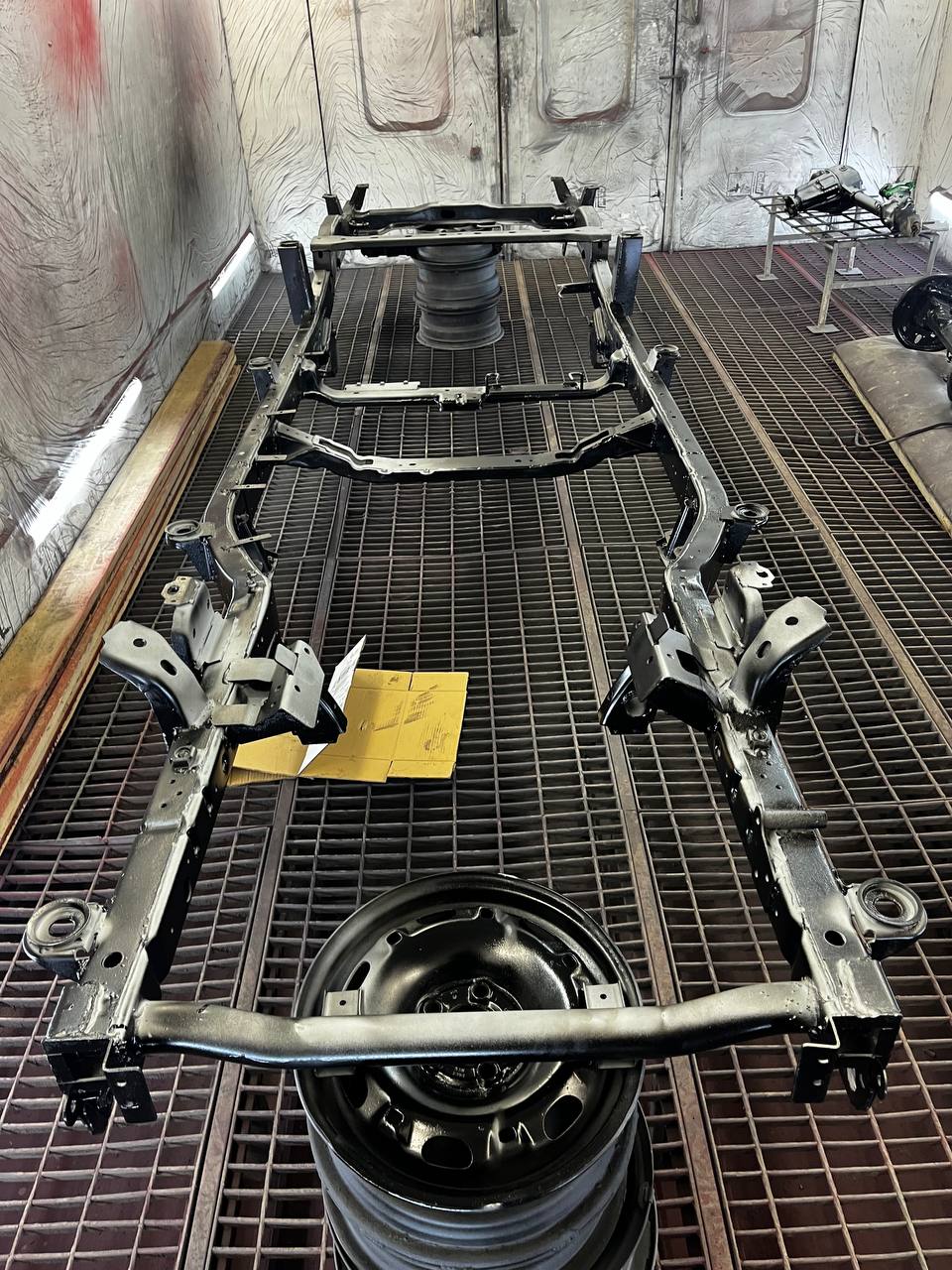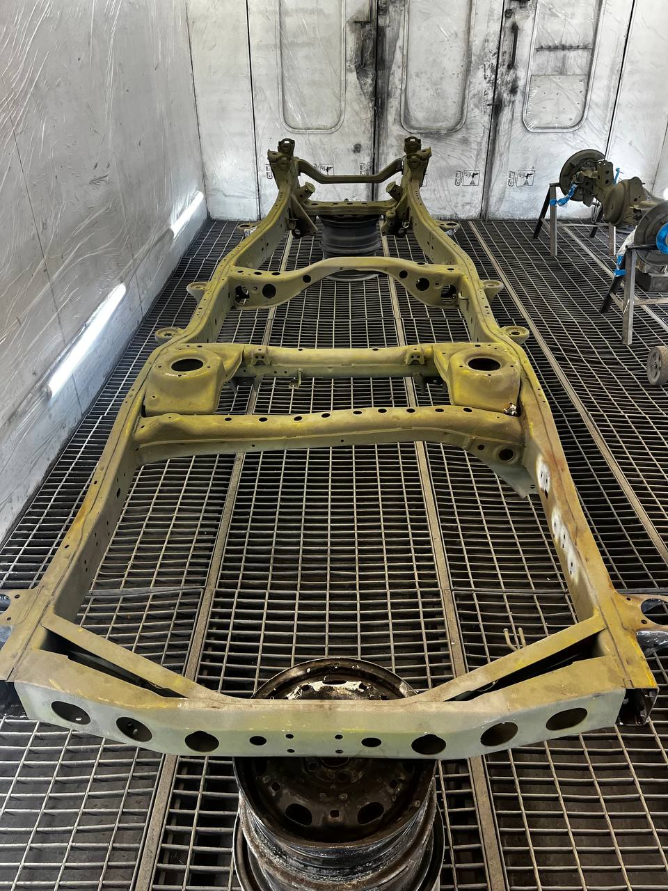 Мы покрываем автомобиль пленкой и проводим тщательную сушку поверхности, используя тепловые пушки для нагнетания горячего воздуха, а также сжатый воздух для просушки труднодоступных мест, рамы и лонжеронов.