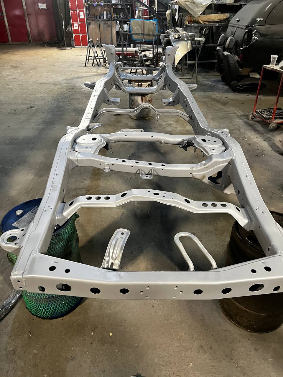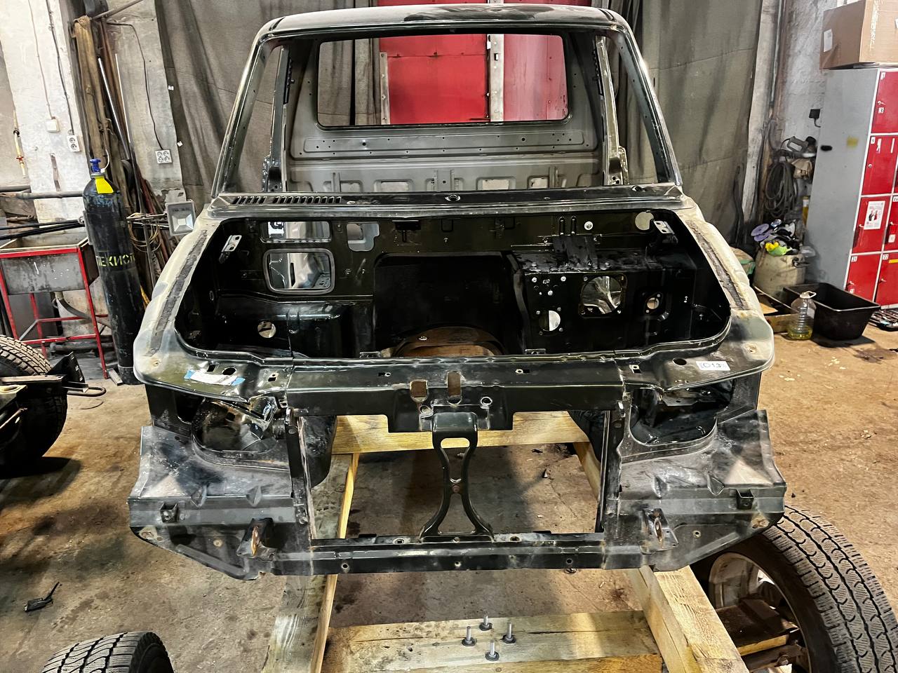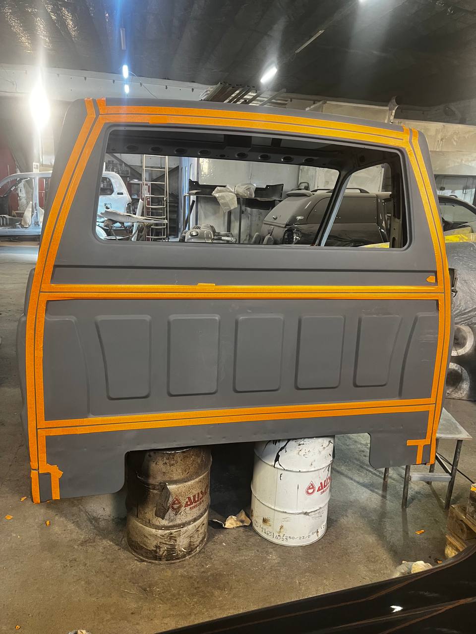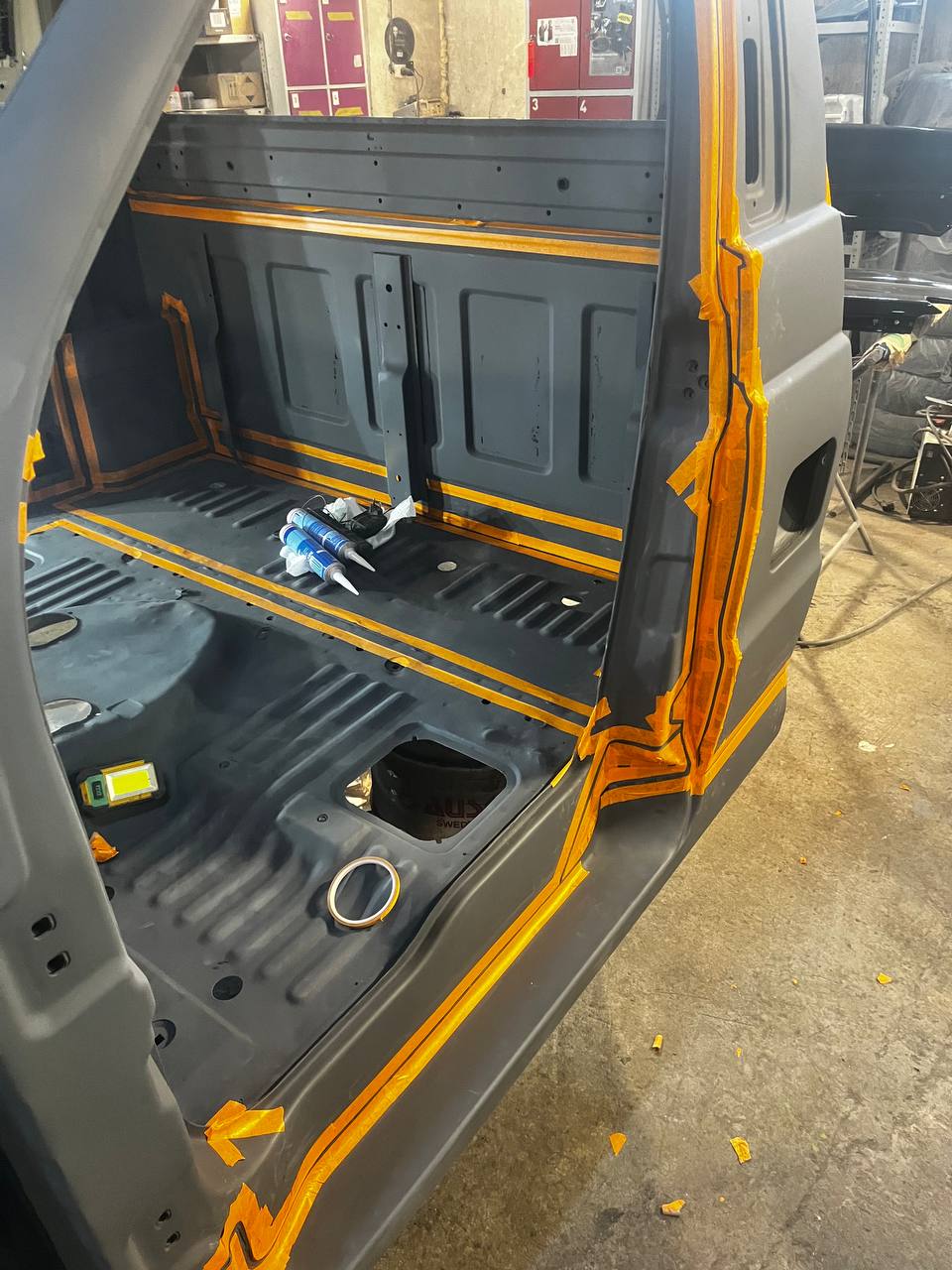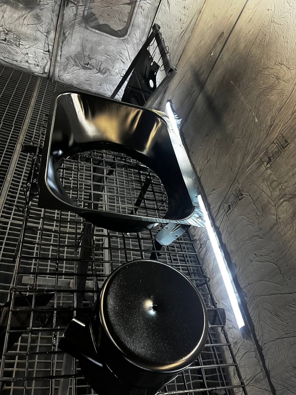 Мы покрываем автомобиль пленкой и проводим тщательную сушку поверхности, используя тепловые пушки для нагнетания горячего воздуха, а также сжатый воздух для просушки труднодоступных мест, рамы и лонжеронов.